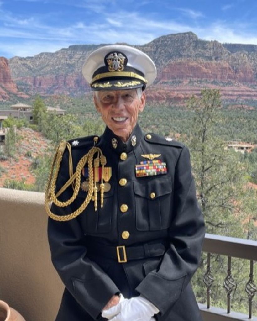 To be very clear to all our members, and as I am sure Jumper would say, he was first, foremost, and always a proud Marine, and part of our Golden Eagle Marine contingent. When he left active duty as a Major after 12 years in the Marine Corps, he joined the Navy Reserves so he could continue flying fighters out of NAS Miramar, eventually retiring as a USNR officer, hence his official title of CDR USNR (Ret). While also proud to serve in the Navy Reserves, his heart and soul was the Marine Corps.